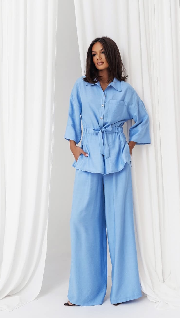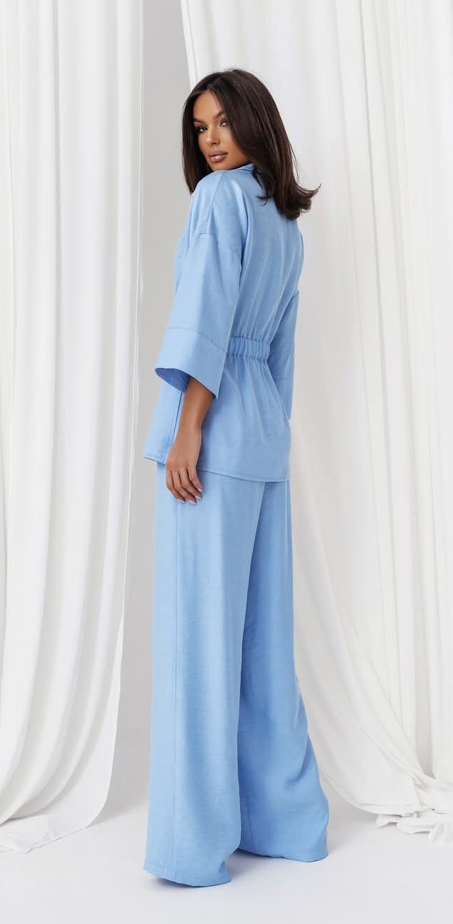 to idealna propozycja dla kobiet, które pragną połączyć elegancję z wygodą. Składa się z lekkiej, zwiewnej bluzki oraz spodni, które wspólnie tworzą harmonijną całość.